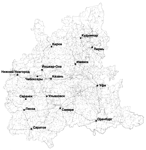Республика Башкортостан, Республика Марий Эл, Республика Мордовия, Республика Татарстан (Татарстан), Удмуртская Республика, Чувашская Республика, Кировская обл., Нижегородская обл., Оренбургская обл., Пензенская обл., Пермская обл., Самарская обл., Саратовская обл., Ульяновская обл., Коми-Пермяцкий авт. округ