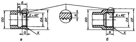 Размеры внутренней цилиндрической резьбы должны соответствовать указанным в таблицах 1 и 2.