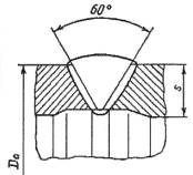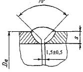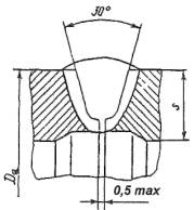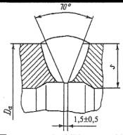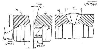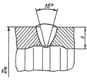 Допускается выполнять переход под углом не более 27°, включительно, а длину расточки lр = 12+3 мм для деталей литых, кованных, штампованных и штампосварных; деталей, изготавливаемых из труб с увеличенной толщиной стенки (отводов гнутых, переходов и др.), отводов гнутых с прямыми участками менее наружного диаметра изгибаемой трубы, а также для арматуры.