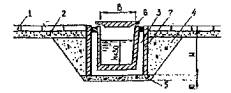 Наибольшее распространение получили железобетонные рамные лотки и лотки прямоугольного сечения по инв. N 819, N 984 (Каталог сборных железобетонных конструкций и изделий для транспортного строительства. Раздел III. Железные дороги. 1987 г.). Лотки рассчитаны для закладки на глубину: рамные - от 0,75 до 1,5 м; прямоугольного сечения - от 0,35 до 0,7 м и от 0,75 до 1,5 м. Для изготовления элементов рамных лотков следует применять морозостойкий бетон марки 400, а прямоугольных - марки 300. При гидравлических расчетах коэффициент шероховатости дна лотков принимается: для рамных - 0,017, для прямоугольных - 0,013.