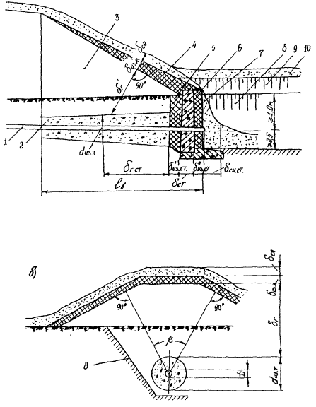2.19. Для безналедного пропуска потока в водопропускных трубах, а также в открытых канавах следует шире применять бетонные лотки, асбоцементные лотки-полутрубы, стыки между секциями которых оставляют, как правило, открытыми.