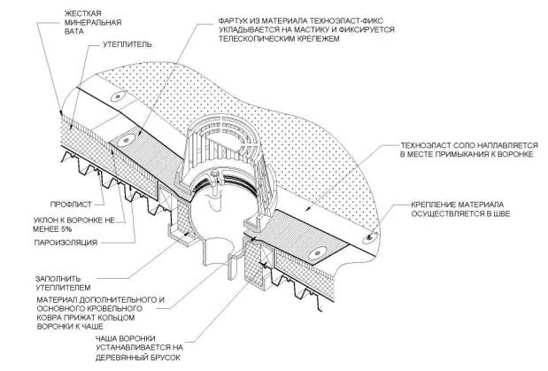 6.3. Узел воронки при устройстве однослойной кровли с механическим креплением.