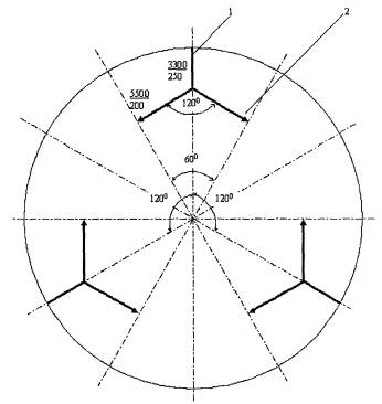 1 - фланец; 2 - патрубок для подачи пены низкой кратности; 3 - щелевидное отверстие для выхода пены низкой кратности