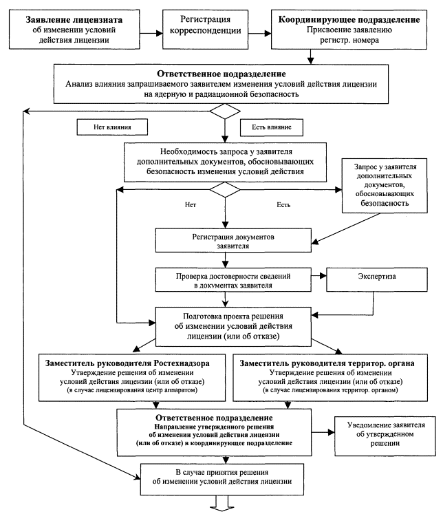 Рис. 6. Блок-схема выполнения административной процедуры по изменению условий действия лицензии (часть 1)