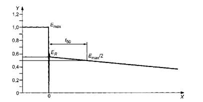 Если ER < Еmах/2, то t50 записывают как менее 0,01 с. Если указанное поле не затухает до Еmах/2 в течение 30 с, t50 записывают как более 30 с.