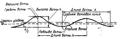 h0 - возвышение средней волновой линии в м;