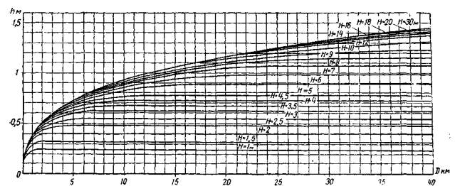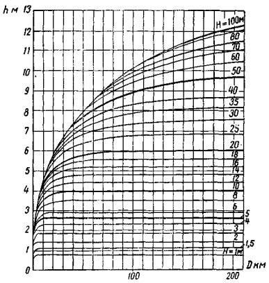 h -то же, мелкой воде в м;