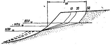 Определение ширины зон размыва S на заданные сроки производится графически на инженерно-геологических профилях по полученным расчетным значениям Q.