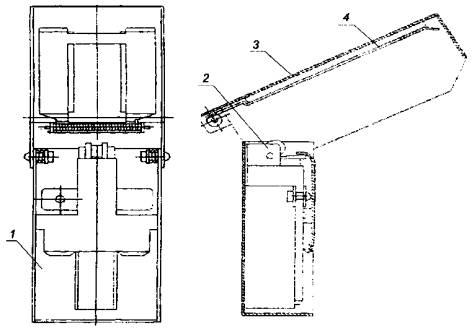 1 - корпус; 2 - газовая зажигалка; 3 - поворотная крышка; 4 - зажимное устройство
