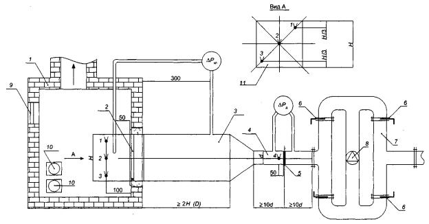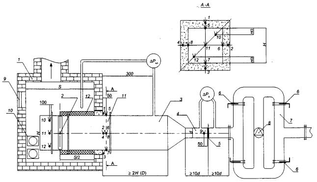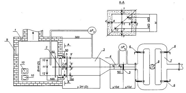 Рисунок А.1 - Схема стендового оборудования для испытания на огнестойкость противопожарных клапанов вентиляционных систем различного назначения