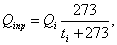 8.1 Фактические значения подсосов (утечек) через неплотности конструкций образца в i-м измерении Qinp, м3/с, приведенные к температуре 20 °С, определяются по соотношению