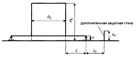 Расстояние от ограждающей стены до дополнительной защитной стены Lв, м, определяют по формуле