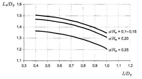 Lв = Dp[1,516 - 572,34 (а/Нж)6 - 0,17(L/Dp)3] (Б.1)