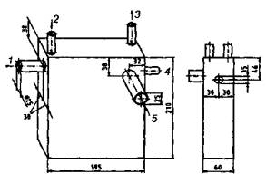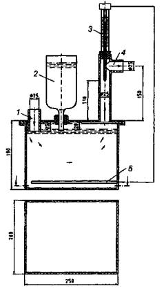 1 - штуцер для подключения насоса «искусственные легкие»; 2 - пополняющий резервуар; 3 - терморегулирующее устройство; 4 - штуцер для подключения тройника; 5 - электронагреватель