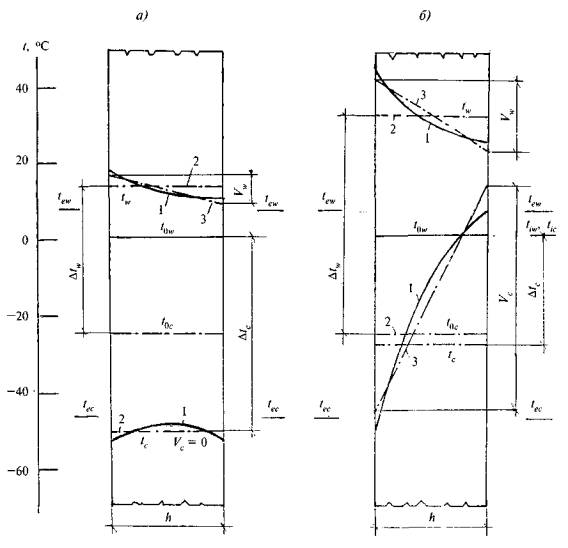 Продольные усилия и деформации в железобетонных конструкциях вызываются изменением средней температуры и влажности сечения. Усилия и деформации из плоскости конструкции возникают при изменении перепада температуры и влажности по толщине элемента. Расчет на воздействие средней температуры и влажности и перепада температуры и влажности производится раздельно. При совместном воздействии средней температуры и влажности и перепада температуры и влажности усилия и деформации алгебраически суммируются на основе принципа независимости действия сил.