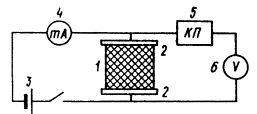 1 - образец; 2 - электроды; 3 - источник питания (генератор); 4 - эталонное сопротивление