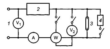 При измерении светового потока цепь вольтметра лампы и цепь измерения напряжения ваттметра должны быть разомкнуты, а амперметр и цепь измерения тока ваттметра - зашунтированы при необходимости.