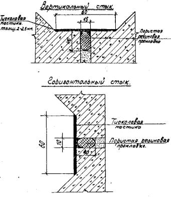 При ширине стыков до 10 мм вместо ПРП в стыки заводится просмоленная пакля.