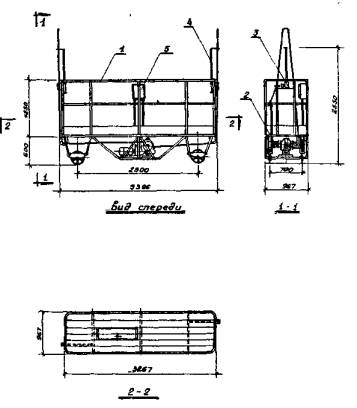 1 – 4х колесная каретка; 2 – механизм ручного привода; 3 –