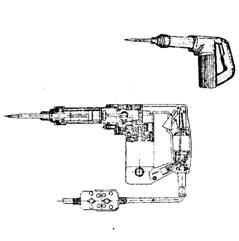 Число ударов -1500 уд/мин. Рабочее давление воздуха - 6 ат Расход воздуха -0,15 м3/мин. Диаметр воздухопроводного шланга в