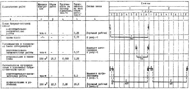 2.4.1. Работы по устройству выравнивающего слоя из битумно-песчаной смеси выполняют в две смены звеном в следующем составе: