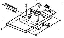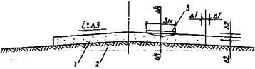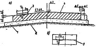2.3.2.6. Поперечный профиль выравнивающего слоя проверяют шаблоном, перемещаемым одним колесом по рельс-форме, а другим - по бетону смежного ряда (рис. 2).