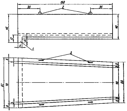Монтаж лотка начинают с нижнего раструба (рис. 2), устанавливают с помощью автокрана блоки упоров, на них укладывают плиты лотка раструба, а затем устанавливают стенки раструба.