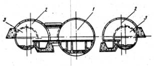 6.1.2. По второму варианту сооружается раньше средний тоннель, а за ним путевые. В путевых тоннелях сооружаются бетонные опоры для свода станции и в несущей конструкции без переделки оставляется часть обделок перегонных тоннелей.