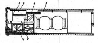 1 - породопогрузочная машина ППМ-4М; 2 - вагонетка; 3 - тюбингоукладчик ТУ-4ГП;