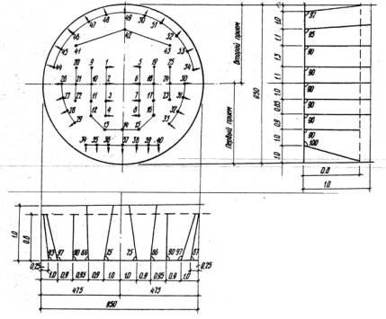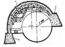 2.6. Обделка тоннеля в глухих частях состоит из чугунных станционных тюбингов в количестве 16 шт. в кольце, из них нормальных - 13 шт. (СН), сменных - 2 шт. (СС) и замкового - 1 шт. (СК).