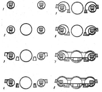 2.15. На рис. 4 приведены этапы работ по сооружению станционного тоннеля.