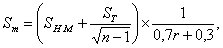 В тех случаях, когда в качестве единичной прочности бетона принята средняя прочность бетона конструкции, вычисленная как среднее арифметическое значение прочности контролируемых участков конструкций, среднее квадратическое отклонение прочности бетона партии конструкций Sm вычисляют с учетом средних квадратических отклонений градуировочной зависимости по формуле