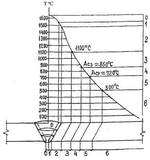 Рисунок 4.1 - График температурных зон в металле при сварке