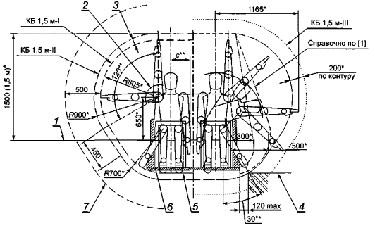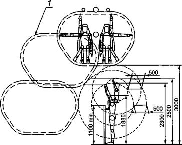 3.8 контур безопасности: Ограничение части пространства, внутри которого перемещается пассажир, обеспечивающее отсутствие риска получения травм в результате соприкосновения с подвижными и неподвижными элементами конструкций.
