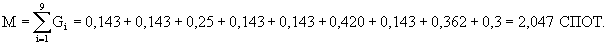 2.1.3. Величина критерия G3 в соответствии с п. 3.1 табл. 1 составляет 0,25 СПОТ.