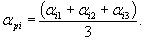 Фактический коэффициент звукопоглощения αр в каждой i-й октавной полосе частот определяют как среднеарифметическое значение трех коэффициентов звукопоглощения αi1, αi2 и αi3, измеренных в третьоктавных полосах частот, входящих в состав октавы, и вычисляют по формуле