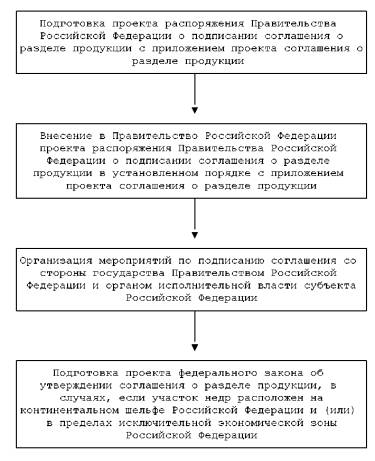 1) подготовка проекта распоряжения Правительства Российской Федерации, включая проект соглашения о разделе продукции;