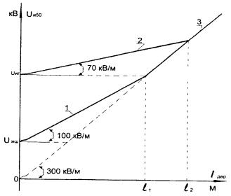 Длина изолирующих траверс в изоляционной части должна быть такой, чтобы градиент рабочего напряжения по пути перекрытия между фазами не превышал 8-10 кВ/м.