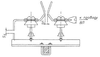 Для отвода дуги от проводов ВЛЗ с металлическими траверсами при расстоянии между проводами более 600 мм рекомендуется применять устройство, показанное на рисунке Ж.5.