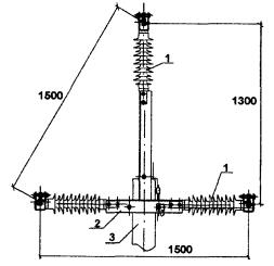 Рисунок Ж.5 - Искровые промежутки на опоре с металлической траверсой для защиты ВЛЗ 6-10 кВ от дуговых повреждений при расстоянии между проводами на опоре более 0,6 м