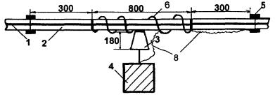 1 - металлический спуск Æ 6-8 мм; 2 - металлические бандажи (3-4 витка) из стальной проволоки
