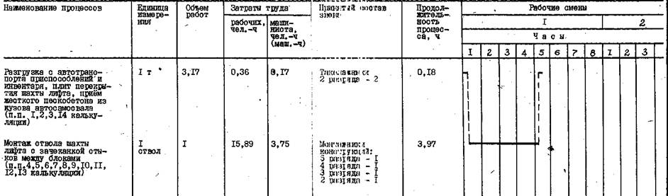 ствола шахты лифта выполняю в три смены. Картой предусматривается монтаж ствола