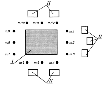Если имеется 12 точек измерений, то их располагают по три вдоль каждой стороны по краям и по середине стороны в соответствии с рисунком 1.