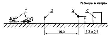 7.1.1 Точки измерений располагают вне стройплощадки вдоль каждой ее стороны на расстоянии 15 м от границы стройплощадки, на высоте (1,2 ±0,1) м от поверхности площадки.