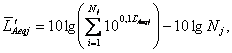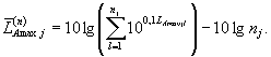 где  - j-й средний эквивалентный уровень звука  или максимальный уровень звука LAmaxjl, из выборки значений, определенных на j-й стороне стройплощадки, дБА;
