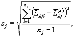 Стандартное отклонение sj, дБA рассчитывают по формуле
