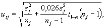 где t1-α(nj - 1) - квантиль распределения Стьюдента для (nj - 1) степеней свободы и вероятности α = 0,05.