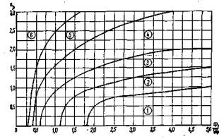 По значению  и принятому виду переходного процесса из диаграммы на рис. 36 находят величину , из которой вычисляют отношение скорости перемещения исполнительного устройства ([% хода H.У.]/с) к единице измерения регулируемого параметра  где Ти - постоянная времени интегрирования.