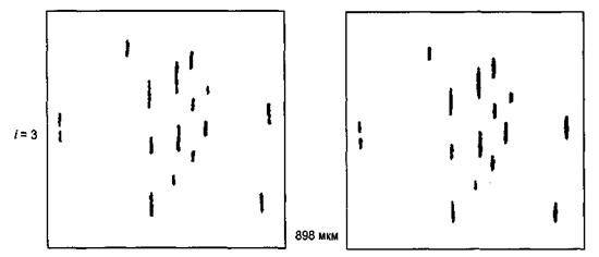 Изображения на эталонной шкале соответствуют квадратным полям зрения площадью 0,5 мм2 каждое, наблюдаемым на продольной полированной плоскости при увеличении × 100.