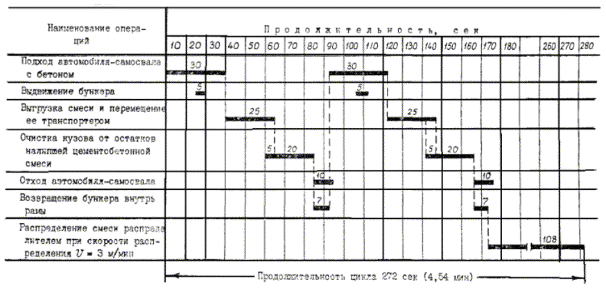 скорость укладки бетонной смеси бетоноукладчиком - 1,25 м/мин;